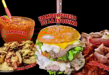 No solo hay Tacos, nuestras hamburguesas únicas de carne Arrachera son nuestra especialidad